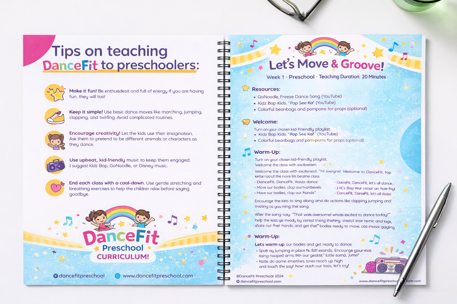 DanceFit™ is a high-energy preschool curriculum designed to introduce toddlers and preschoolers to the world of dance. With full lesson plans and teaching guides, this curriculum provides a fun and engaging way for children to build coordination, confidence, rhythm, and joy through dance-based movement. Your child will love the exciting activities and you'll enjoy watching them grow and develop through the power of dance.